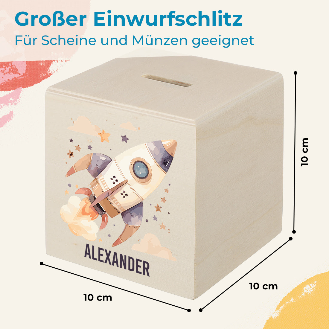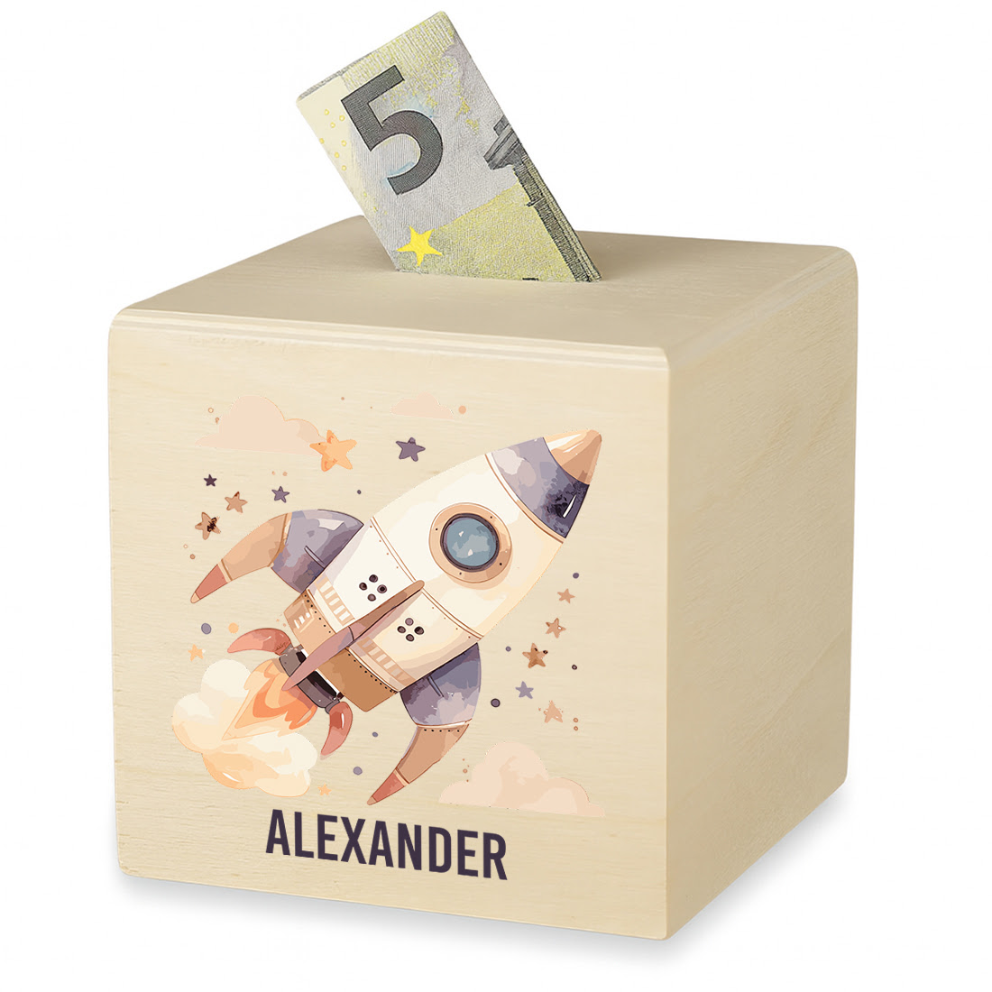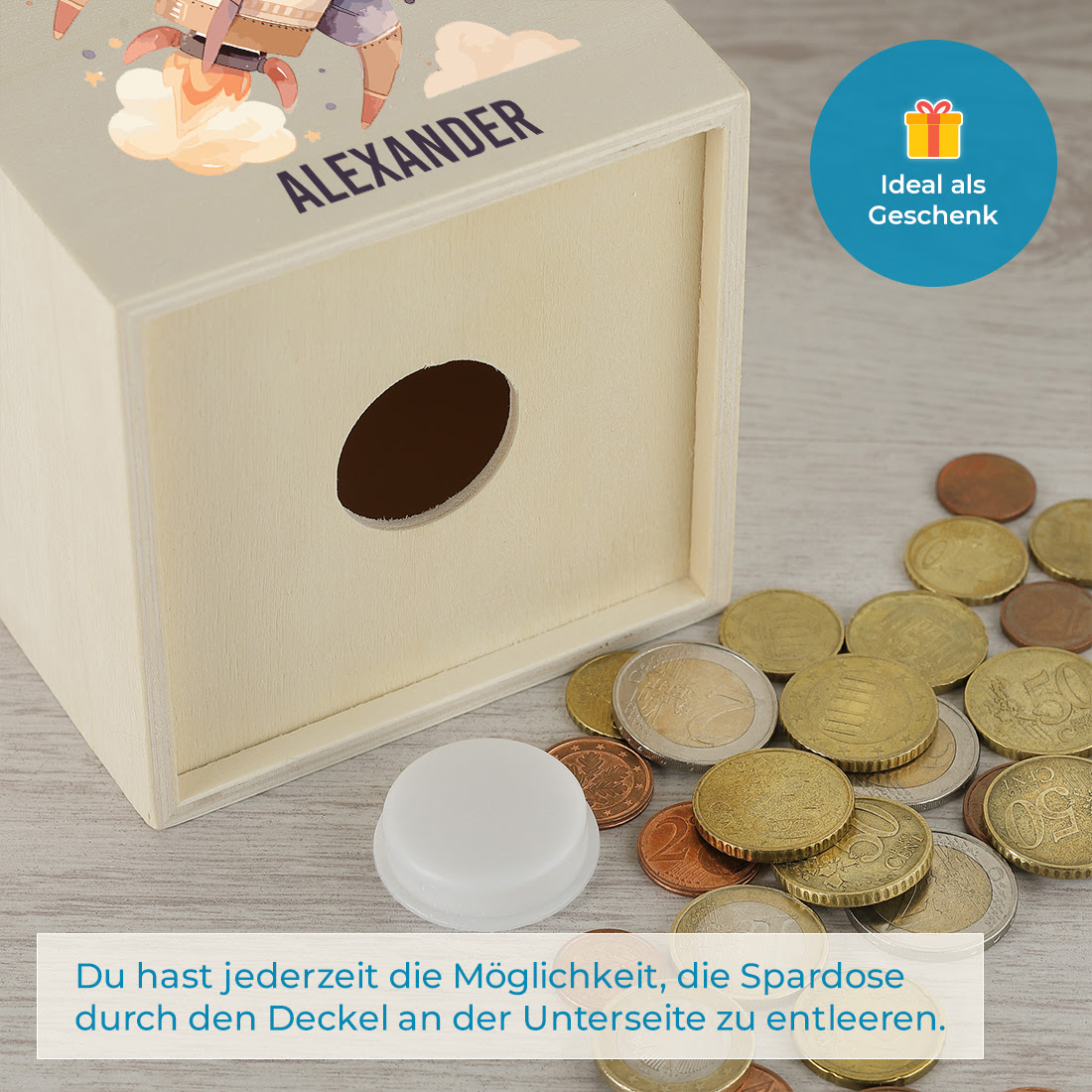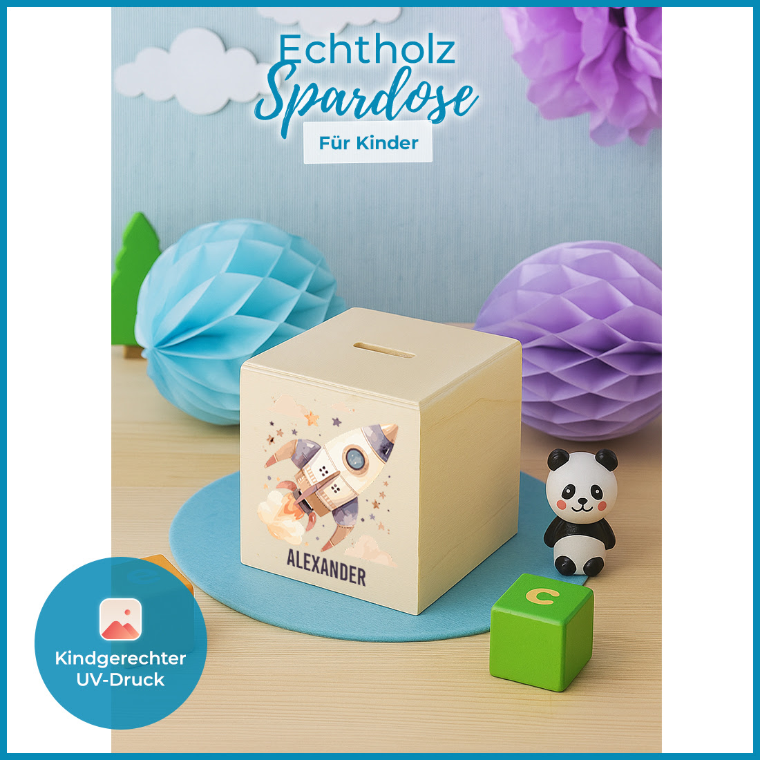 Personalisierte Kinder-Spardose aus Holz mit Namen – liebevoll bedruckt für Jungen