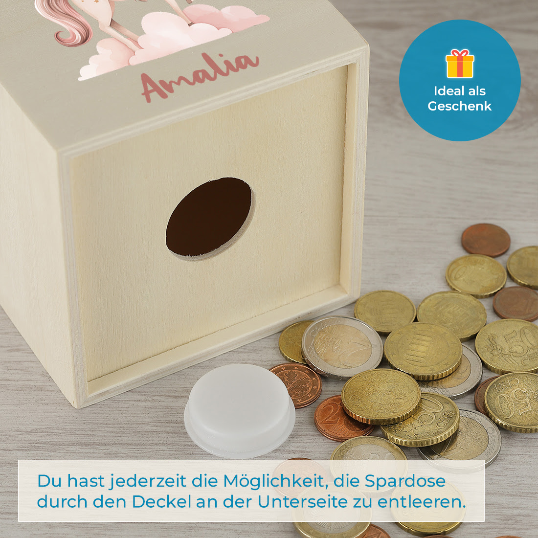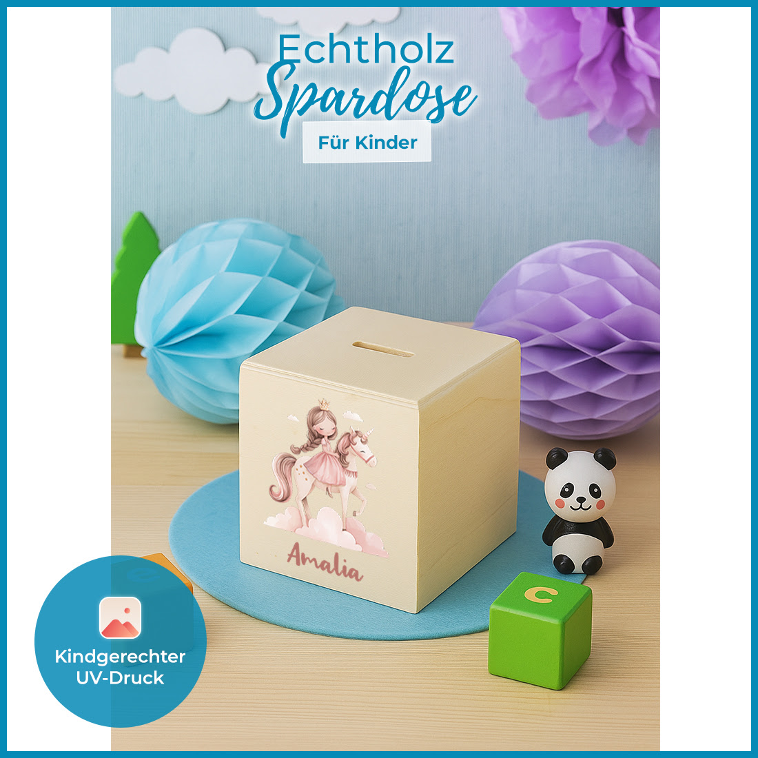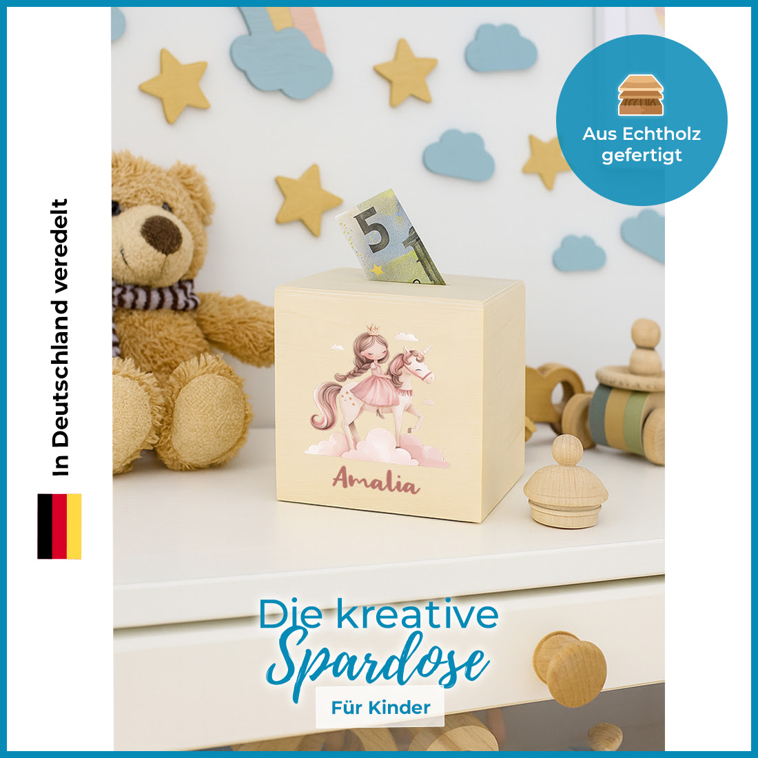 Personalisierte Kinder-Spardose aus Holz für Mädchen– liebevoll bedruckt für deine Kids