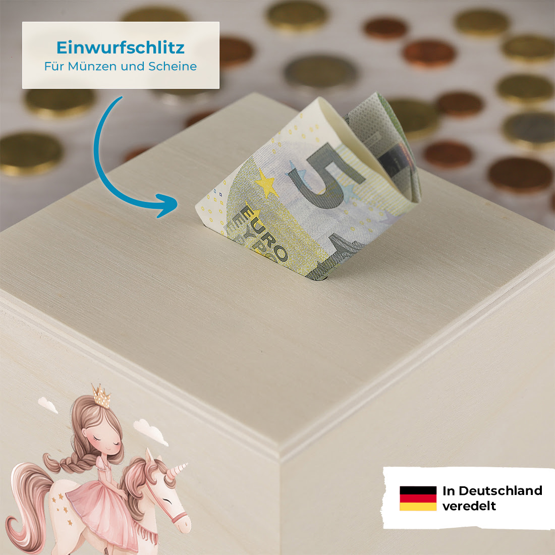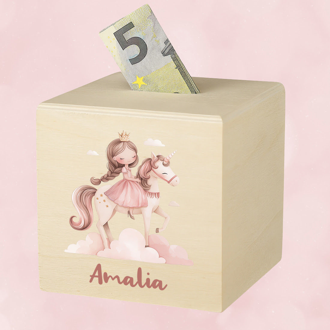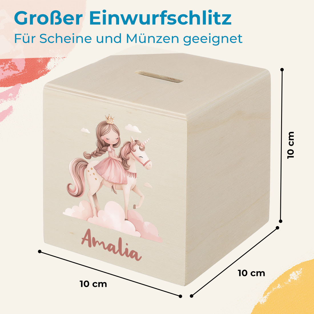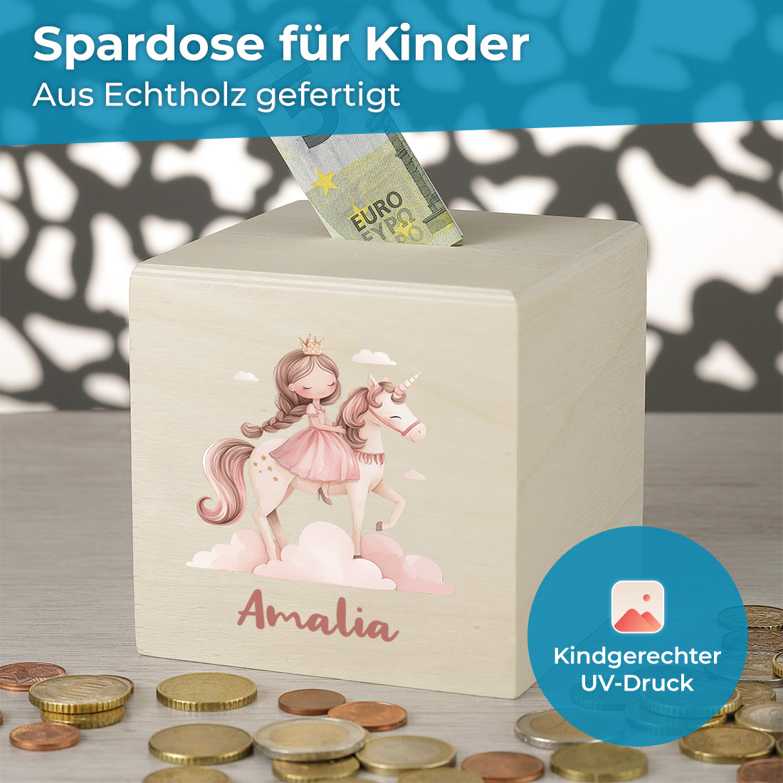 Personalisierte Kinder-Spardose aus Holz für Mädchen– liebevoll bedruckt für deine Kids