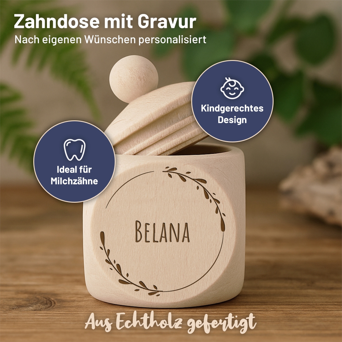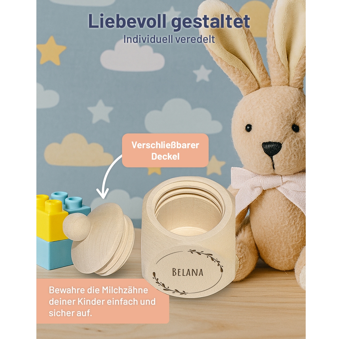 Zahndose aus Holz für Kinder – mit Namen personalisiert