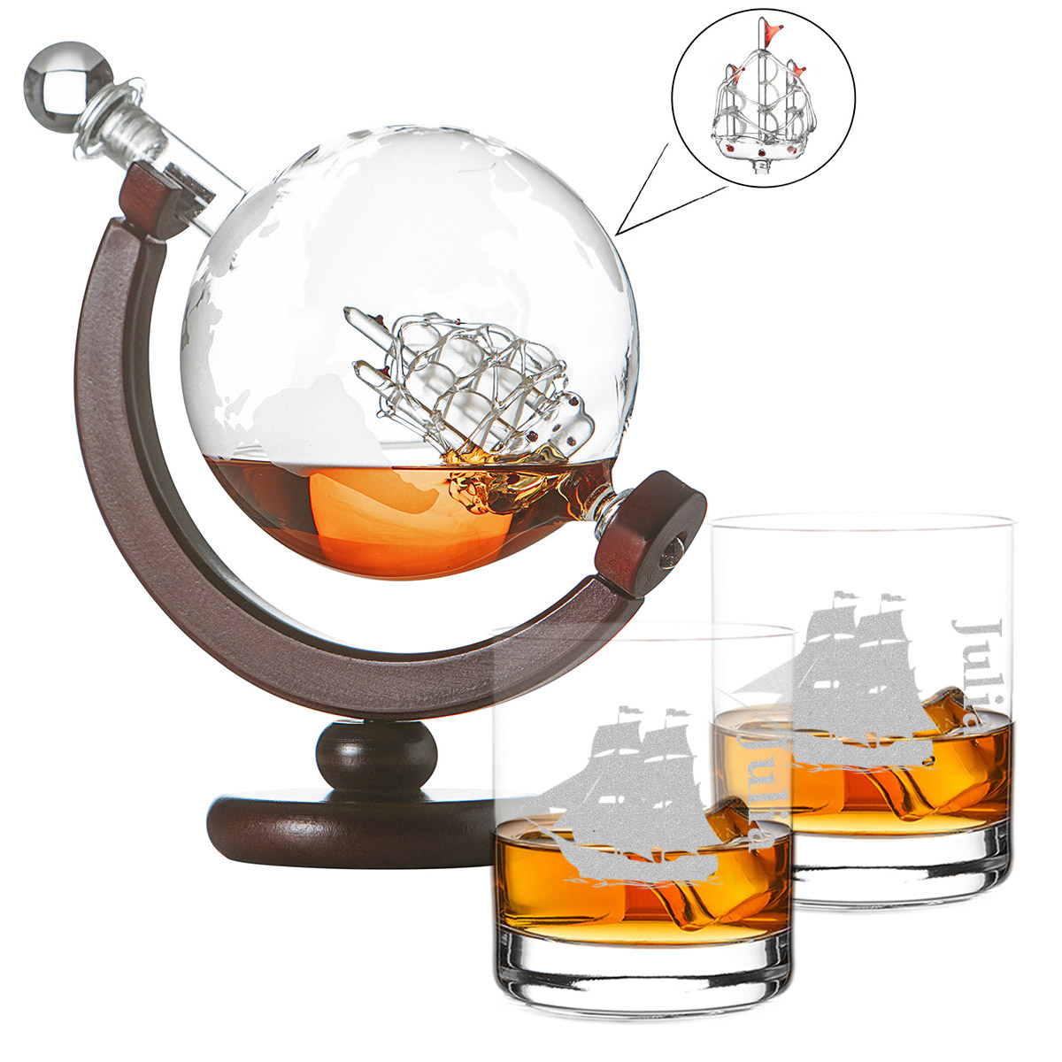 Whiskykaraffe Globus 850ml 2 Whiskyglas mit Gravur