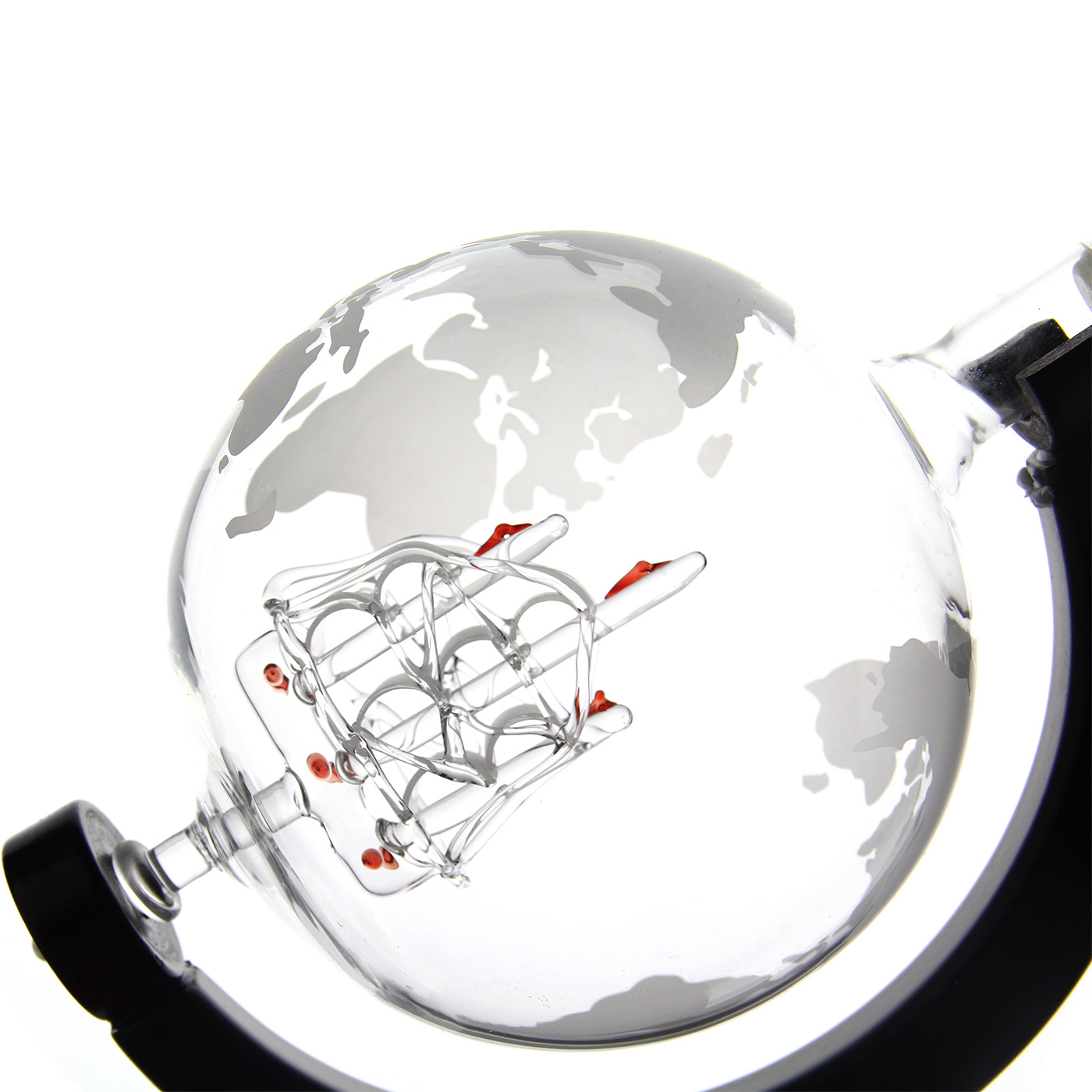 Mit dieser Whisky-Flasche werden Sie ein Geschenk überreichen, dass alle anderen Präsente übertreffen wird. Diese Flasche ist etwas ganz Besonderes. Die mundgeblasene Kugel stellt beim genaueren Hinsehen einen Globus dar. Die Flasche liegt sicher und optisch sehr ansehnlich auf einem Holzgestell. In der Globuskaraffe selbst befindet sich ein Segelschiff aus Glas. Detailgetreu und edel liegt das Schiff im Inneren und segelt durch den köstlichen Whisky.